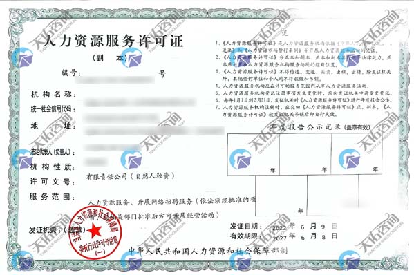 经营范围必须有”人力资源服务“