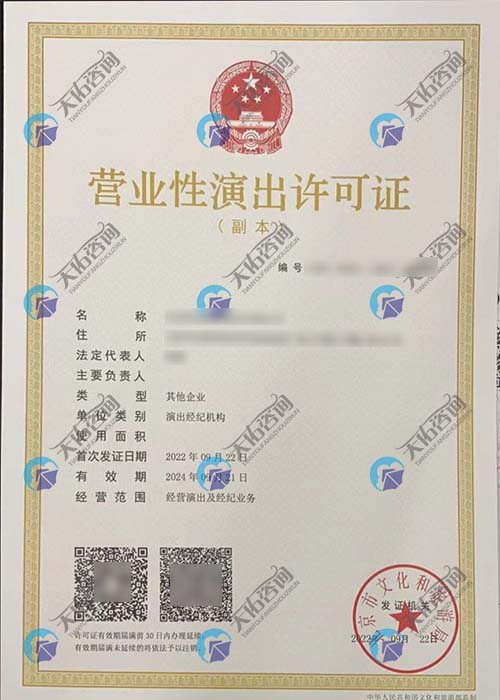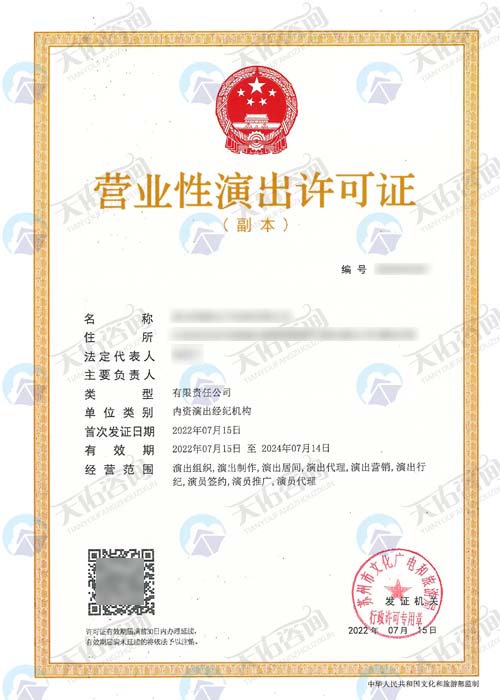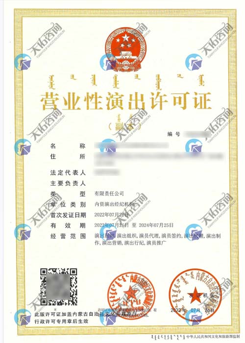 营业执照经营范围中应增加“演出经纪”